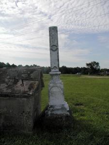 “The stone house over grandpa’s grave was built by Mr. Paddy Brummint, who lived near Bean Creek…. In the 1940s, lighting struck the tomb, tearing it completely down and Rev. A.B. Garrison of the Methodist Church raised funds and had it rebuilt. In the 1950s, it happened again and myself and Uncle Raymond and Aunt Francis built it back and have tried to care for it since. It is said that a beautiful white marble dove once sat on top of the eight-foot monument but some local boys shot it and destroyed it about 60-years ago,” wrote grandson Lee Roy Maxey in a July 14, 1983, article in The Licking News.