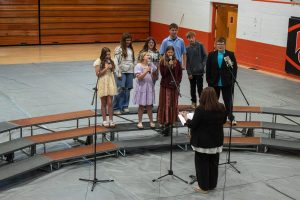 Band Director Crystal Frailey led the Beginner Band through three pieces to begin the concert. They were followed by the fifth and sixth grade singers, with Choral Director Kerri Chafin.